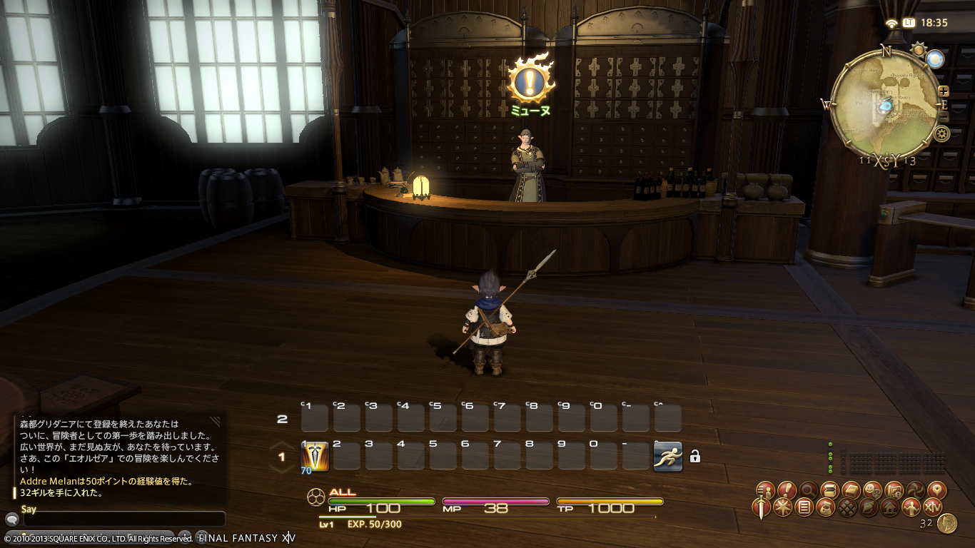 綺麗なムービーのプロローグの後、操作チュトを終えてグリダニアに到着!