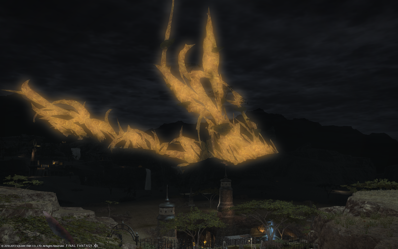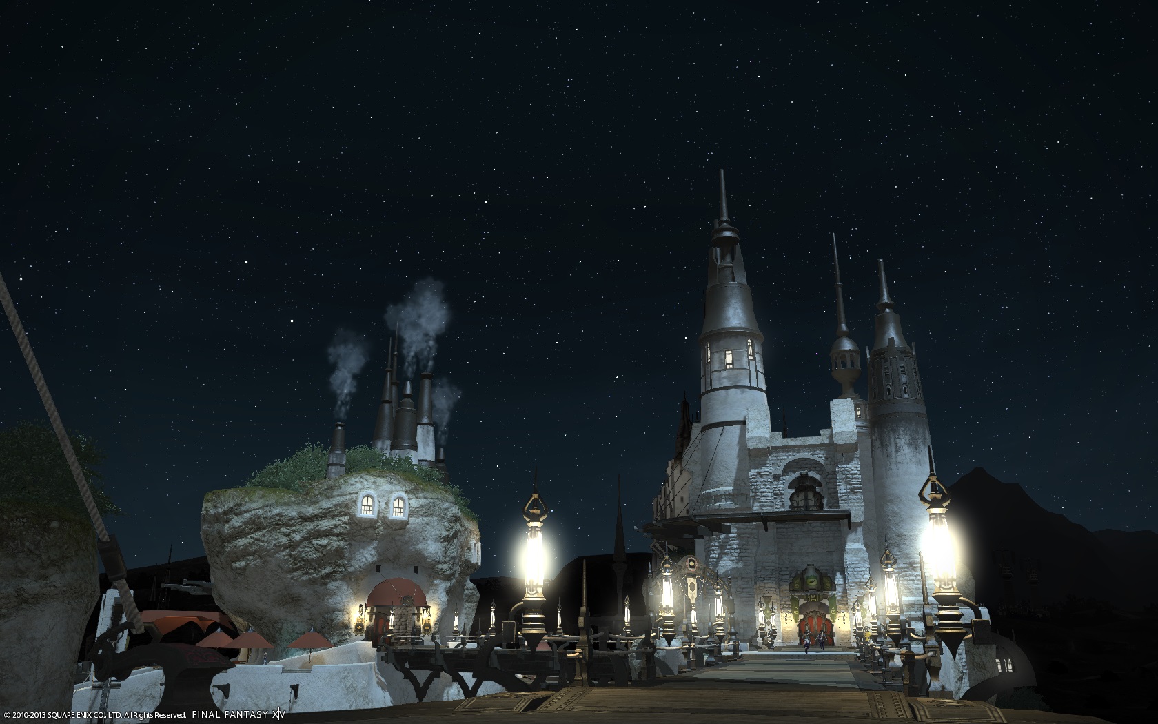 砂漠の町、ウルダハの夜。星が綺麗で建物のライトも良い感じでした。